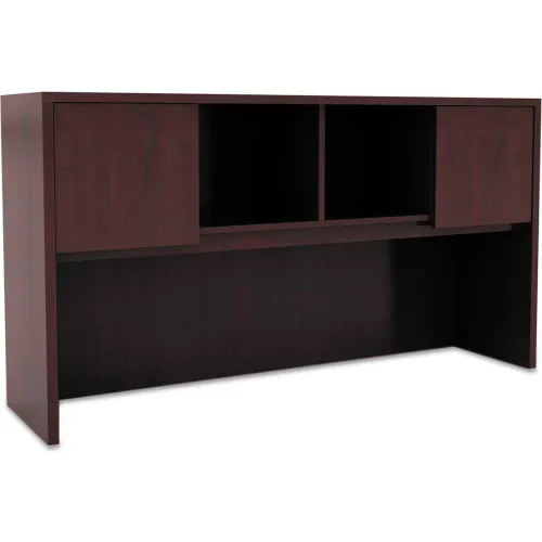 Alera® Hutch with Doors - 58-7/8"W x 15"D x 35-1/2"H - Mahogany - Valencia Series