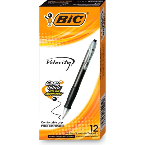 BIC® Velocity Easy Glide Ballpoint Pen, Retractable, Medium 1 mm, Black Ink, Dozen