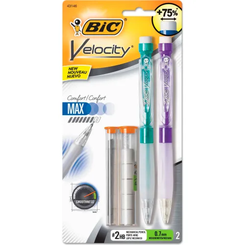 BIC® Velocity Max Pencil, 0.7 mm, HB (#2.5), Black Lead, Assorted Barrel Colors, 2/Pack