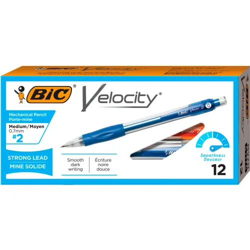 Bic® Velocity Mechanical Pencil, Refillable, Rubber Grip, 0.7mm, Blue Barrel, Dozen