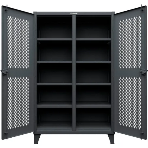 Strong Hold® Ventilated Diamond Double Shift Cabinet, 12 Gauge, 48"W x 24"D x 78"H, Dark Gray