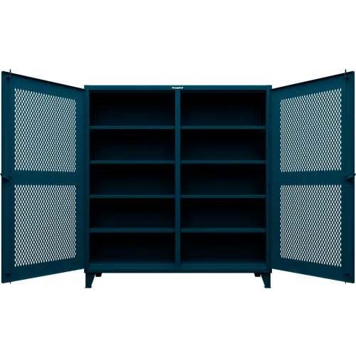 Strong Hold® Ventilated Hex Double Shift Cabinet, 12 GA, 72" W x 24" D x 78" H, Blue