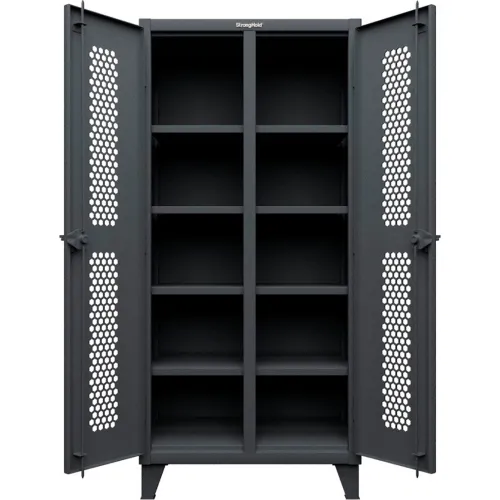 Strong Hold® Ventilated Hex Double Shift Cabinet, 12 Gauge, 36"W x 24"D x 78"H, Dark Gray