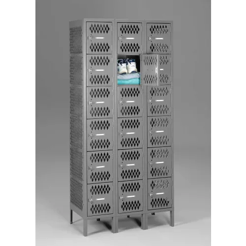 Tennsco® 6-Tier 18 Door Ventilated Locker w/ Legs, 36"W x 18"D x 78"H, Medium Gray, All-Welded