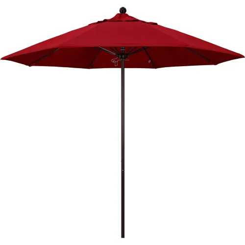 California Umbrella 9' Patio Umbrella, Venture Series, Bronze Pole, Olefin Red