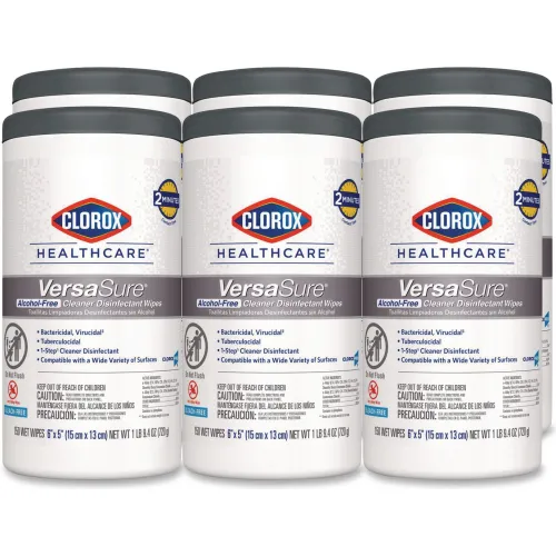 Clorox Healthcare® VersaSure Cleaner Disinfectant Wipes, 1-Ply, 6.75 x 8, (6) 150 Wipe/Canister