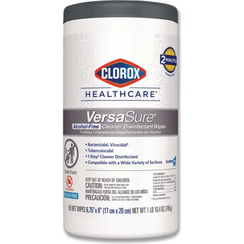 Clorox Healthcare® VersaSure Cleaner Disinfectant Wipes, 1-Ply, 8" x 6.75", 85 Wipes/Canister