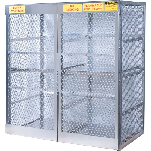 Justrite® Vertical Cylinder Storage Cabinet, Double Door, 16 Cylinder Cap., 60"W x 32"D x 65"H