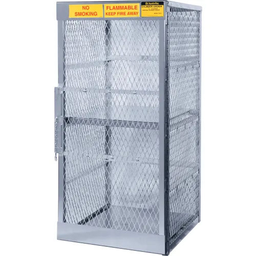 Justrite® Vertical Cylinder Storage Cabinet, Single Door, 8 Cylinder Cap., 30"W x 32"D x 65"H