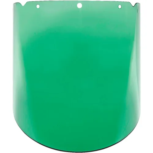MSA V-Gard® Visor, PC, Green Tint, Molded, 9.25"W x 17"L x .098"H,Anti-Fog/Anti-Scratch - Pkg Qty 5