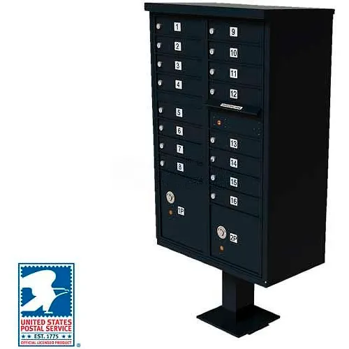 Vital Cluster Box Unit, 16 Mailboxes, 2 Parcel Lockers, Black