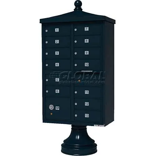 Vital Cluster Box Unit w/Vogue Traditional Accessories, 13 Unit & 1 Parcel Locker, Black