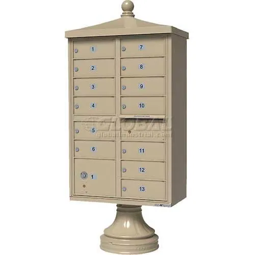 Vital Cluster Box Unit w/Vogue Traditional Accessories, 13 Unit & 1 Parcel Locker, Sandstone