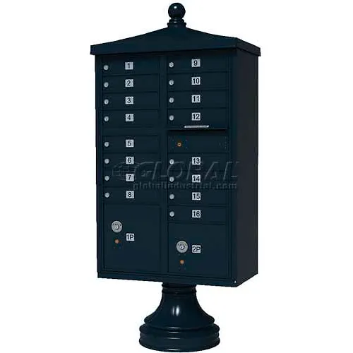 Vital Cluster Box Unit w/Vogue Traditional Accessories, 16 Unit & 2 Parcel Lockers, Black