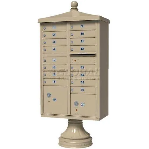 Vital Cluster Box Unit w/Vogue Traditional Accessories, 16 Unit & 2 Parcel Lockers, Sandstone