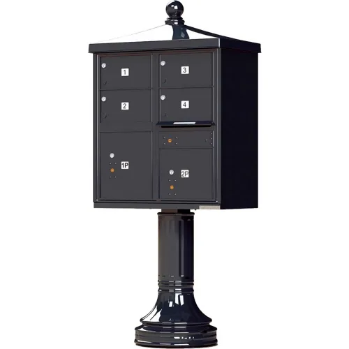 Vital Cluster Box Unit w/Vogue Traditional Accessories, 4 Mailboxes & 2 Parcel Lockers, Black