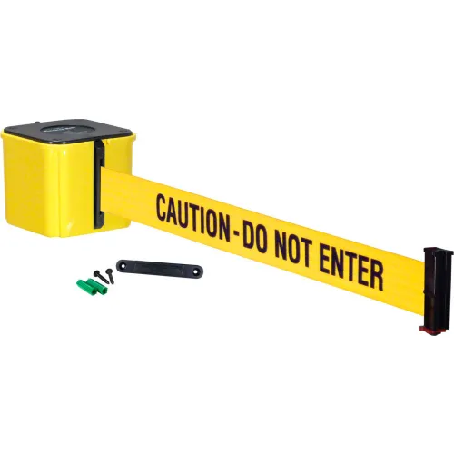 Retracta-Belt® Wall Mount Retractable Belt Barrier, Yellow Case W/20' Yellow "Caution" Belt