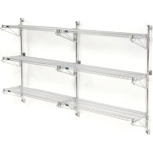 Nexel® Chrome Adjustable Wall Mount Wire Shelving, 3 Shelf, Add On, 48"Wx14"Dx54"H