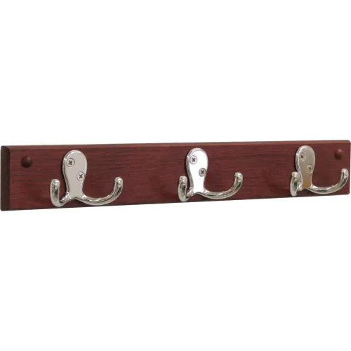 Wooden Mallet® Wall Mounted Coat Rack, 3 Double Prong Hook Rail, Nickel/Mahogany