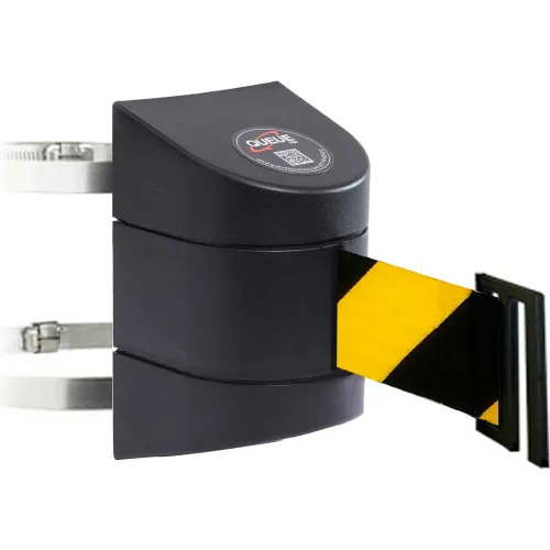 Warehouse Retractable Belt Barrier, Clamp Mount, Black Case W/25' Black/Yellow Belt