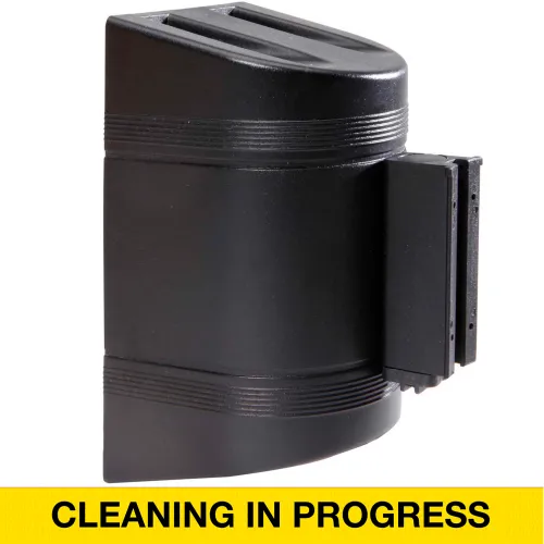 WallPro 300 Wall Mount Retractable Belt Barrier, Black Case W/10' Yellow "Cleaning" Belt