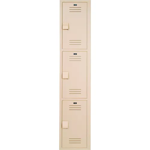 Bradley® 3-Tier 3 Door Wardrobe Locker w/ Padlock Hasp, 12"W x 12"D x 60"H, Beige, Assembled