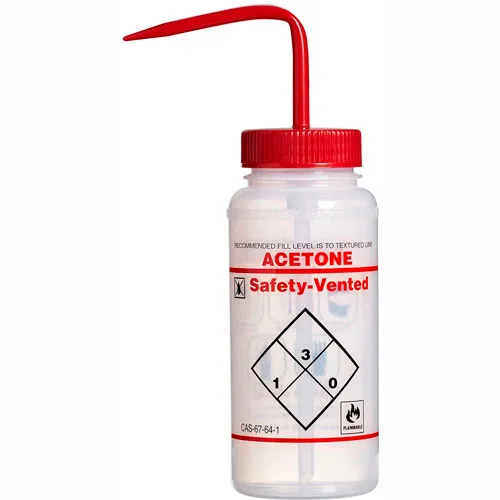Bel-Art LDPE Wash Bottles 116420622, 500ml, Acetone Label, Red Cap, Wide Mouth, 3/PK