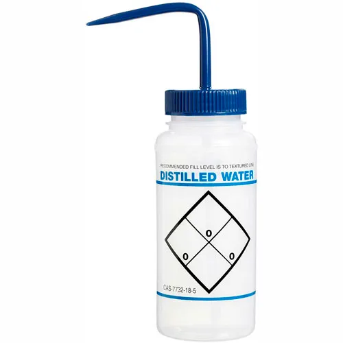 Bel-Art LDPE Wash Bottles 116460620, 500ml, Distilled Water Label, Blue Cap, Wide Mouth, 6/PK