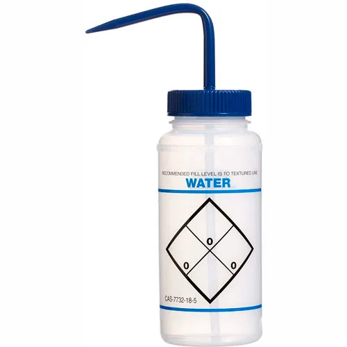 Bel-Art LDPE Wash Bottles 116460621, 500ml, Water Label, Blue Cap, Wide Mouth, 6/PK