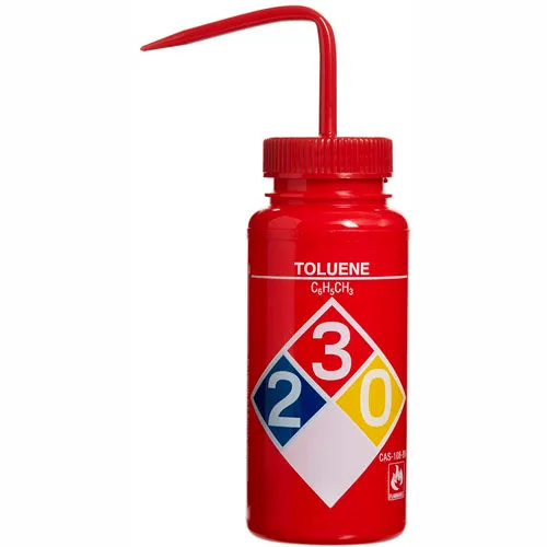 Bel-Art LDPE Wash Bottles 117160016, 500ml, Toluene Label, Red Cap, Wide Mouth, 4/PK