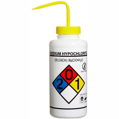 Bel-Art LDPE Wash Bottles 117320015, 1000ml, Sodium Hypochlorite Label, Yellow Cap, Wide Mouth, 4/PK