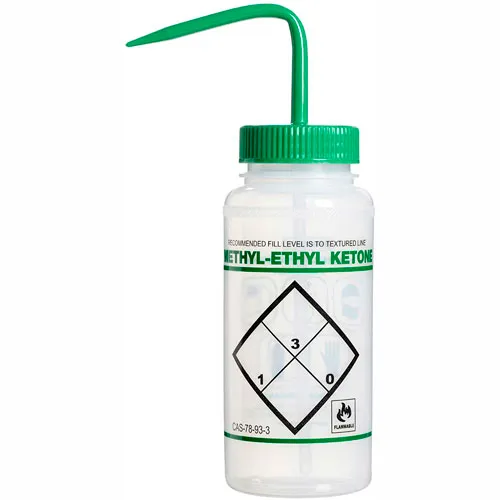 Bel-Art LDPE Wash Bottles 116460611, 500ml, Methyl Ethyl Ketone Label, Green Cap, Wide Mouth, 6/PK