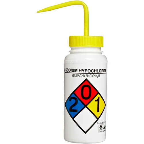 Bel-Art LDPE Wash Bottles 117160015, 500ml, Sodium Hypochlorite Label, Yellow Cap, Wide Mouth, 4/PK