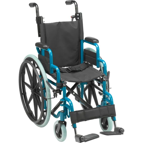Drive Medical WB1400-2GJB Wallaby Pediatric Folding Wheelchair, 14" Seat, Jet Fighter Blue