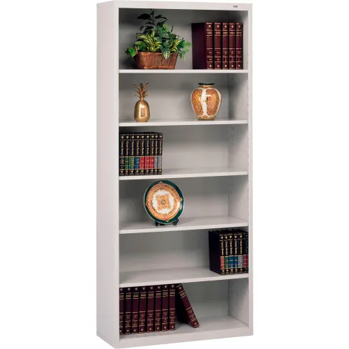 Tennsco® Welded Bookcase, 34-1/2"W x 13-1/2"D x 78"H, 6 Openings, Light Grey