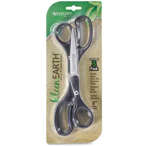 Westcott 15585 KleenEarth Basic Plastic Handle Scissors, 8" Length, Pointed, Black, 3/PK
