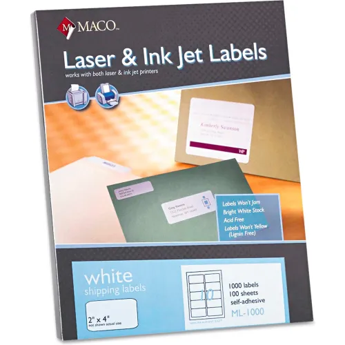 Maco® White All-Purpose Labels, 2 x 4, 1000/Box