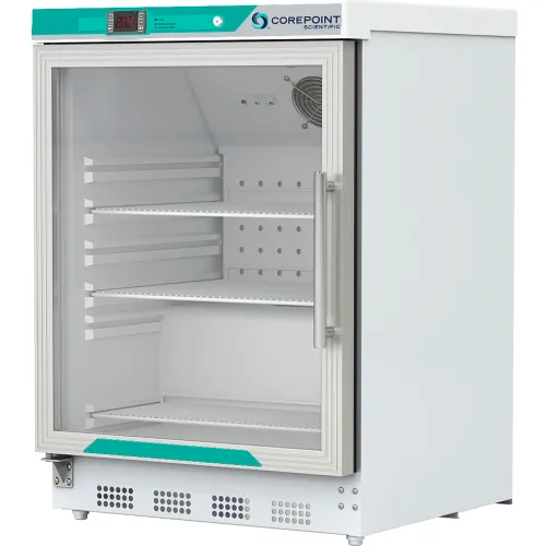 CorePoint Scientific White Diamond Built-In Undercounter Refrigerator, 4.6 CuFt, Glass/Left Hinge