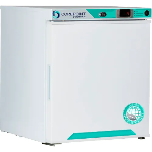 CorePoint Scientific White Diamond Countertop Refrigerator, 1 Cu.Ft, Solid Door/Left Hinged.