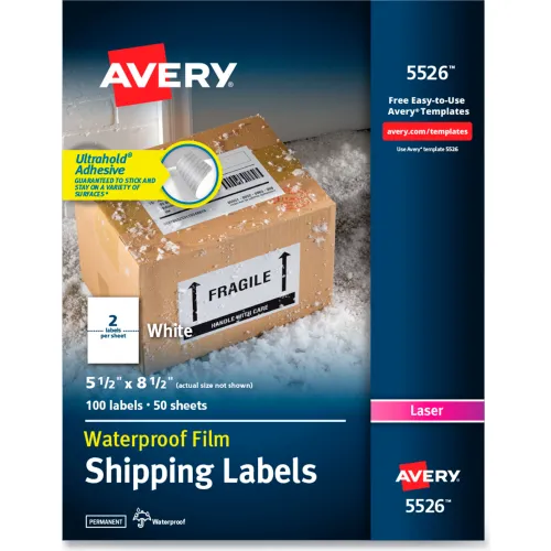 Avery® White Weatherproof Laser Shipping Labels, 5-1/2 x 8-1/2, 100/Pack