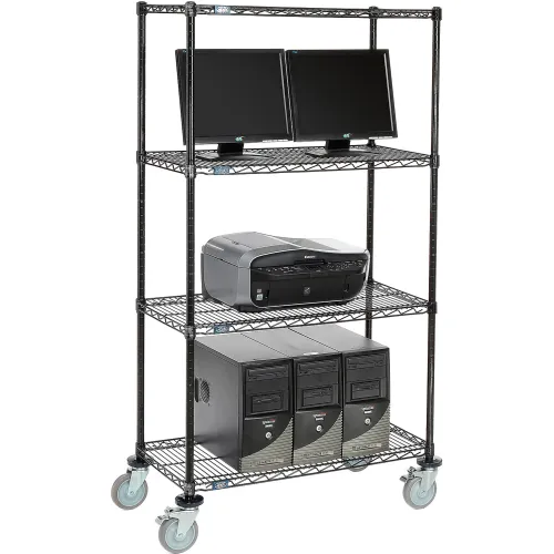 Nexel 4-Shelf Mobile Wire Computer LAN Workstation, 36"W x 18"D x 69"H, Black