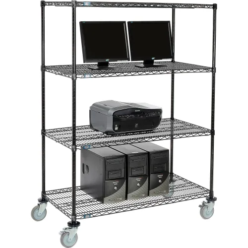 Nexel™ 4-Shelf Mobile Wire Computer LAN Workstation, 48"W x 24"D x 69"H, Black