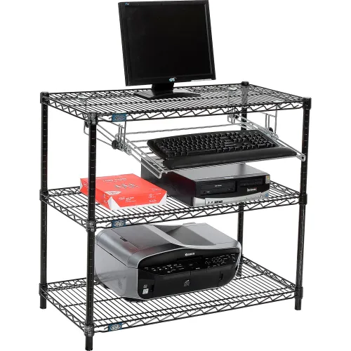 Nexel 3-Shelf Black Wire Shelf Printer Stand with Keyboard Tray, 36"W x 18"D x 34"H