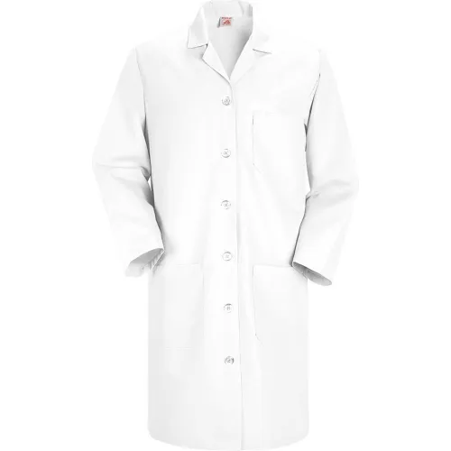 Red Kap® Women's Button Front Lab Coat, White, Poly/Combed Cotton, L