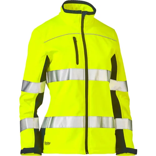 Bisley® Women's Contoured Softshell Jacket, ANSI, L, Hi-Vis Yellow