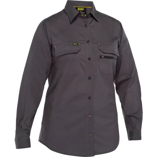Bisley® Women's Long Sleeve Ripstop Work Shirt with X-Airflow Ventilation, L, Gray