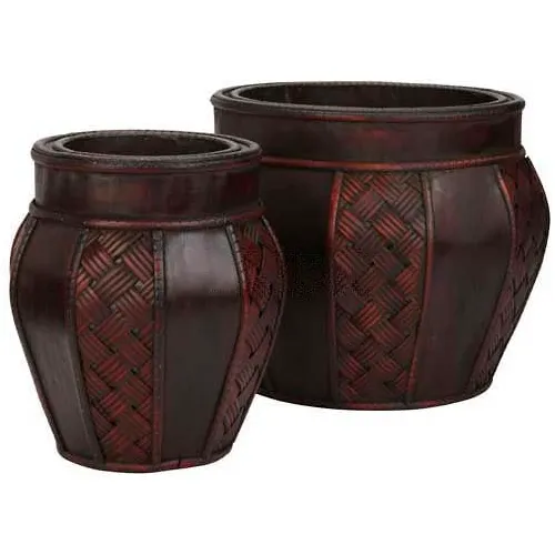 Nearly Natural Wood and Weave Panel Decorative Planters (Set of 2)