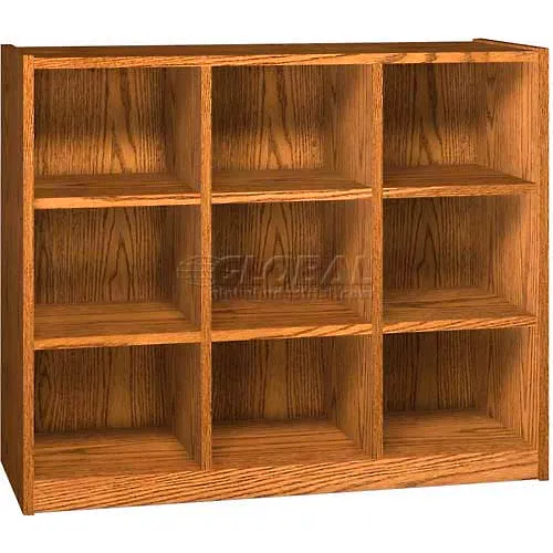 Wood Cubicle Cabinet, 9 Openings, Open Front, 52 x 17-5/8 x 42-3/8, Folkstone Grey
