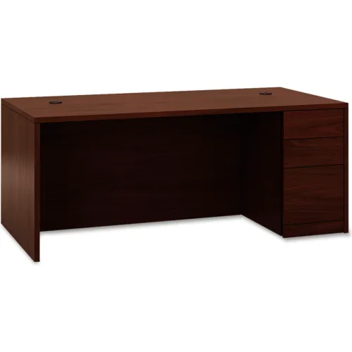 HON® 10500 Series L-Workstation Desk with Right Full-Height Pedestal, 72"x36"x29.5", Mahogany