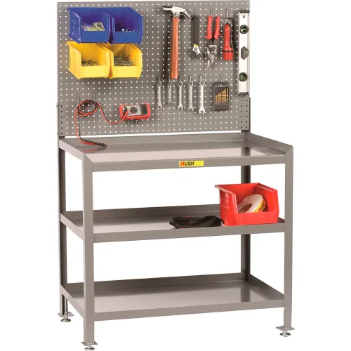 Little Giant® Workbench, 36 x 24", Pegboard Panel & 3 Shelves, Steel Square Edge